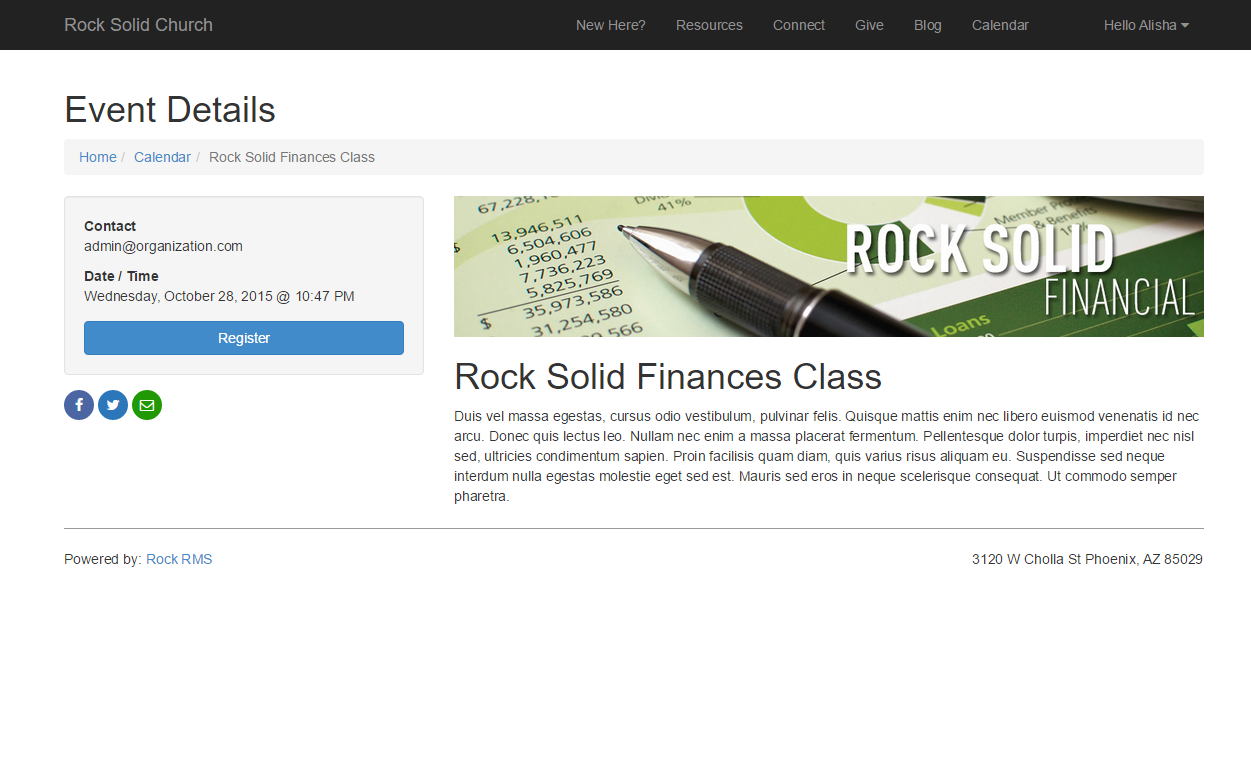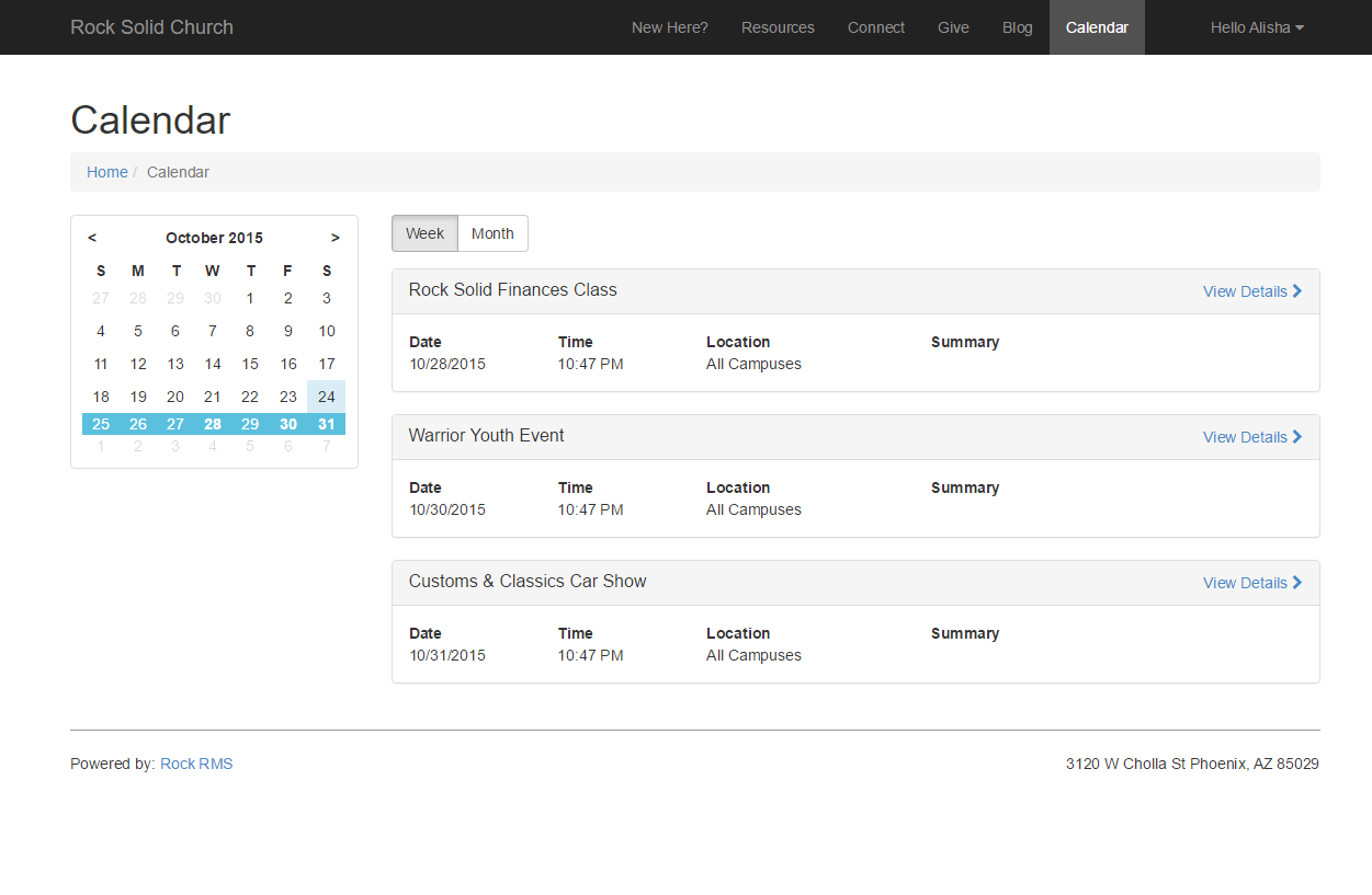 How you decide to display events to your guests will be very unique. Rock provides several blocks to help