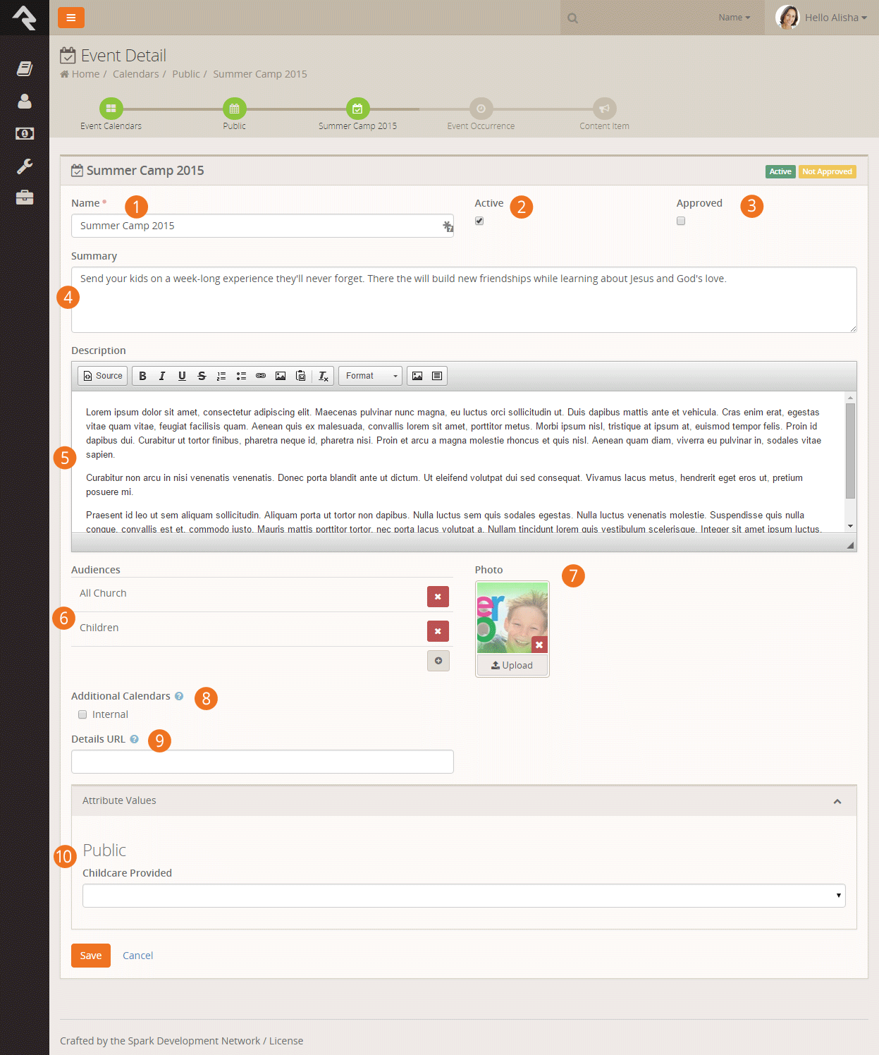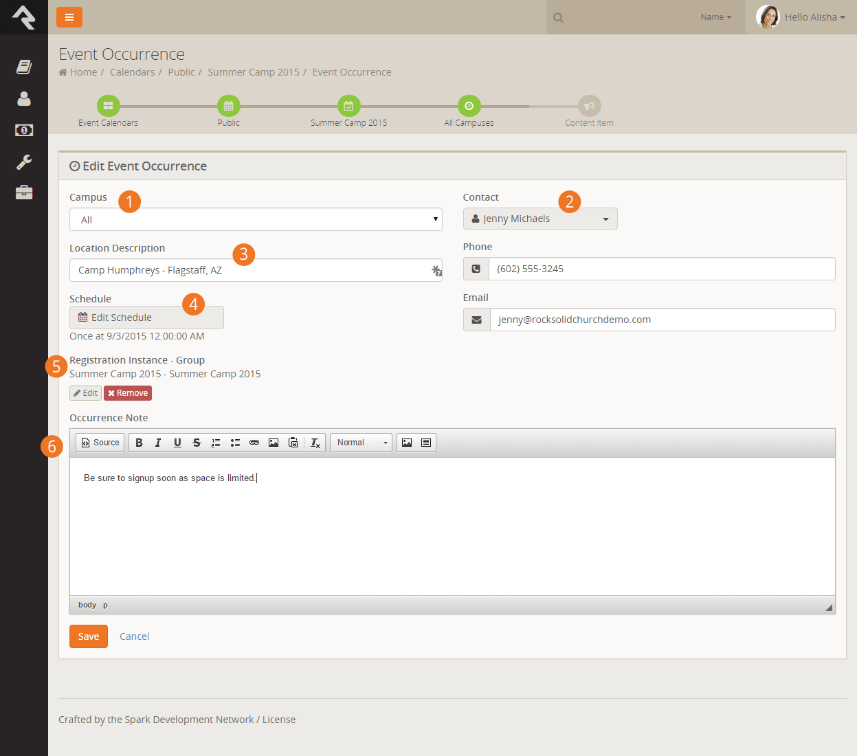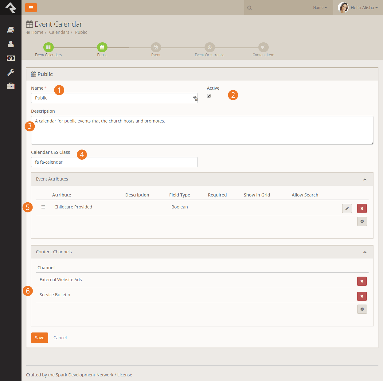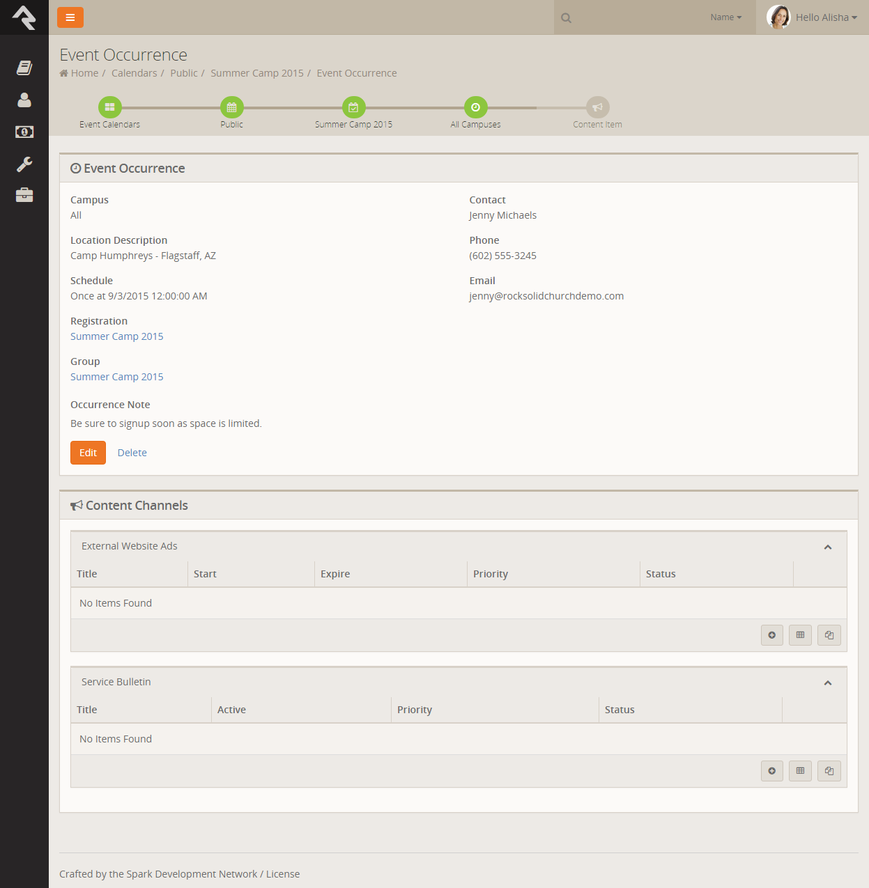 - After saving the occurrence, you can enter any content channel items you need for your event.