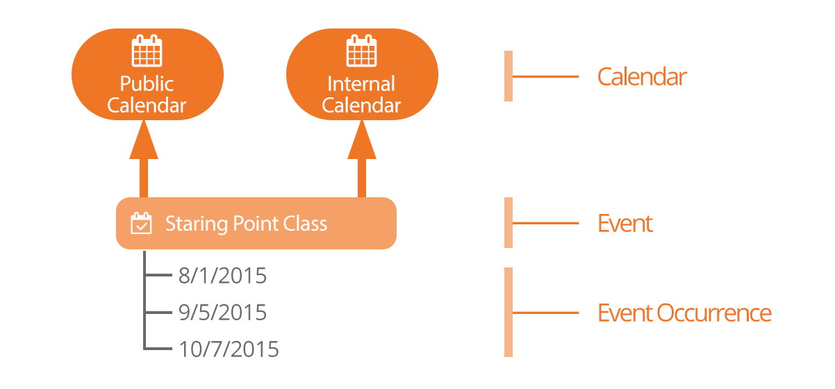 Once you create these linkages, you can view and manage them from either the calendar occurrence, group or event instance detail screens.