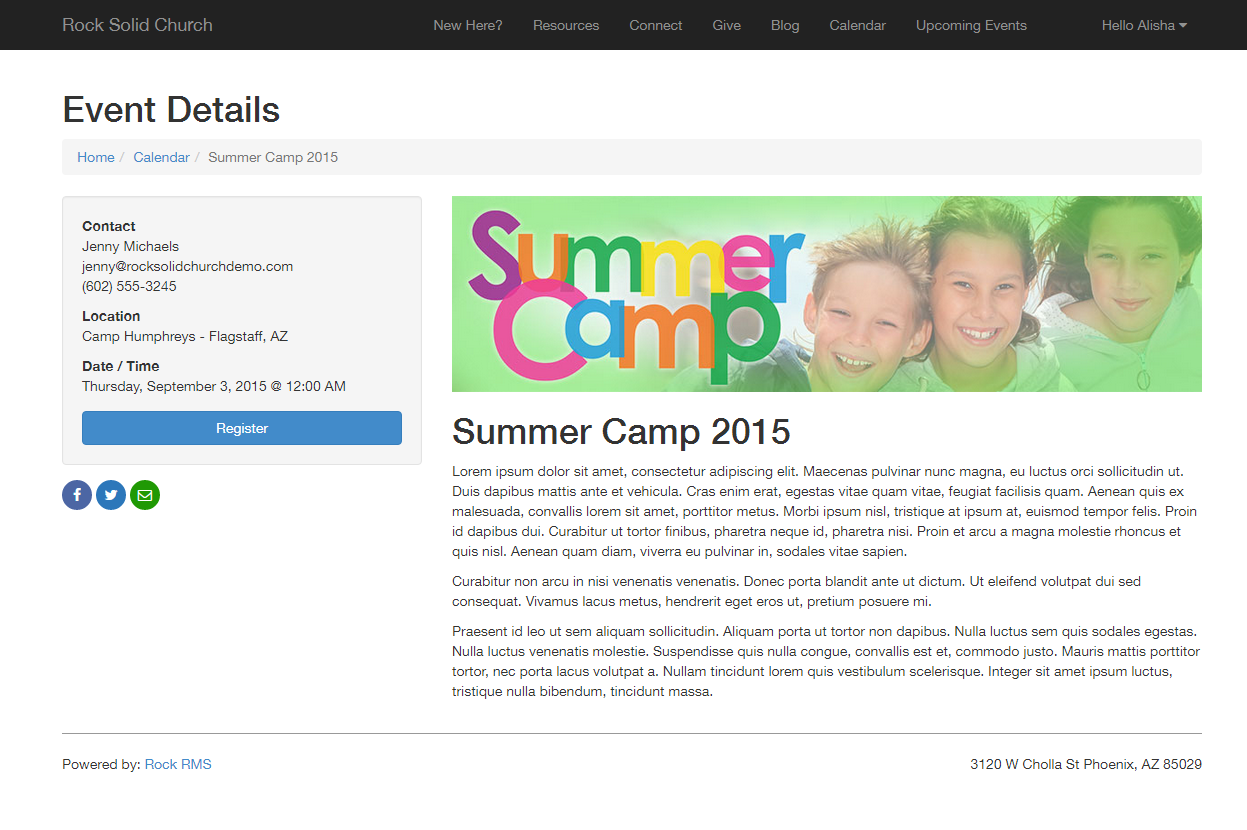 details for the event occurrence. This page is formatted entirely using Lava, so customize at will.