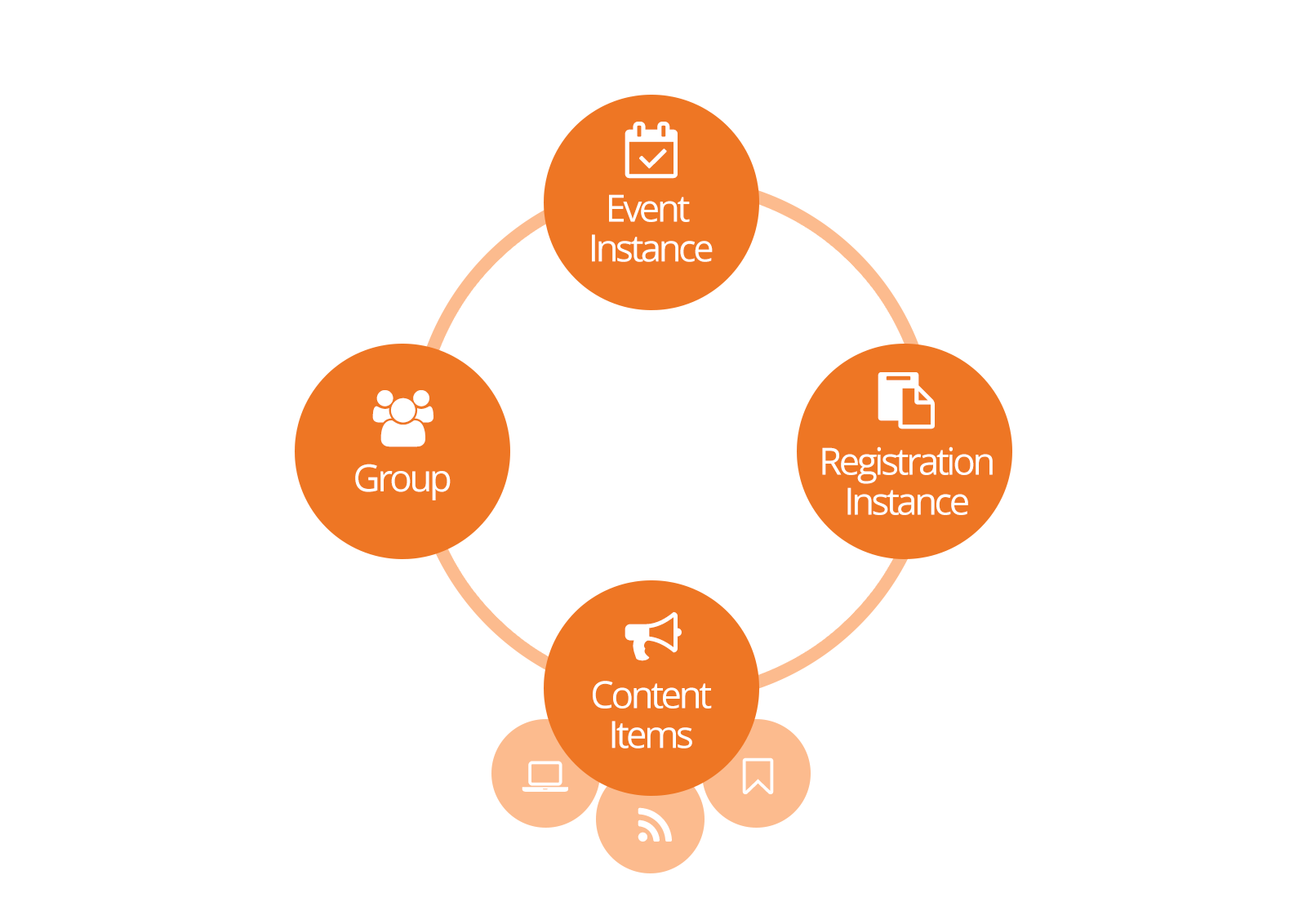 While you can link registrations, events, groups and content channel items many different ways