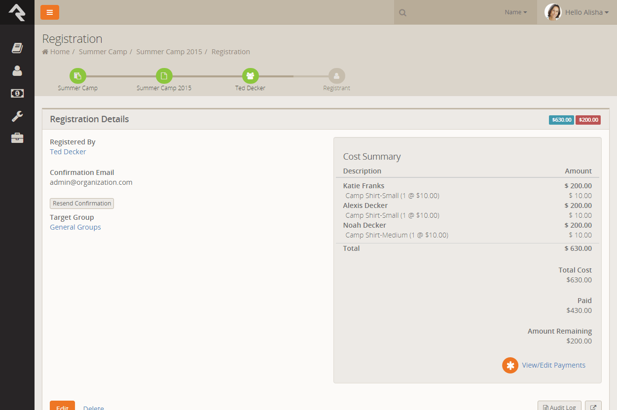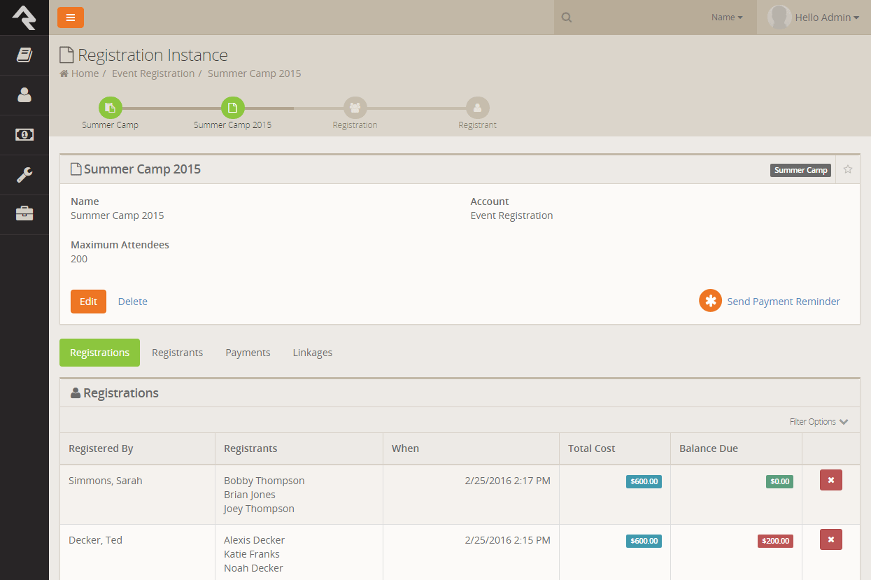 - New "Show Family Members" option on Registration Template when registrants are in the same family.