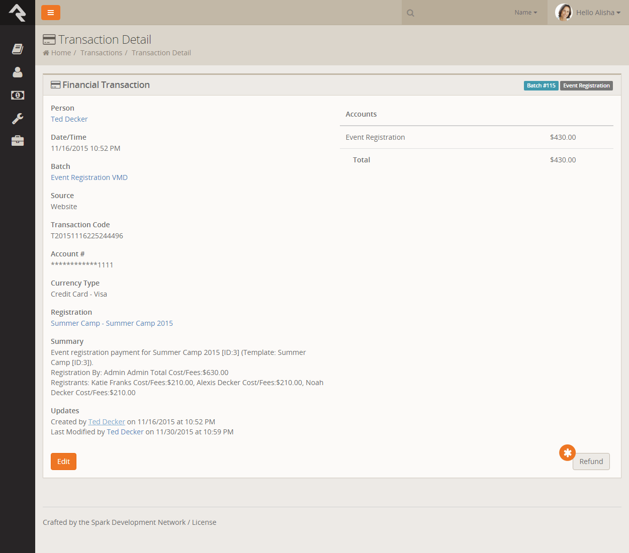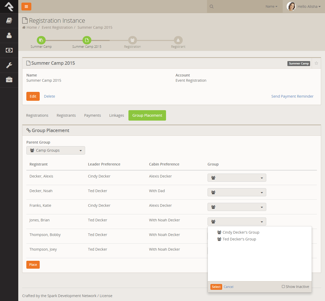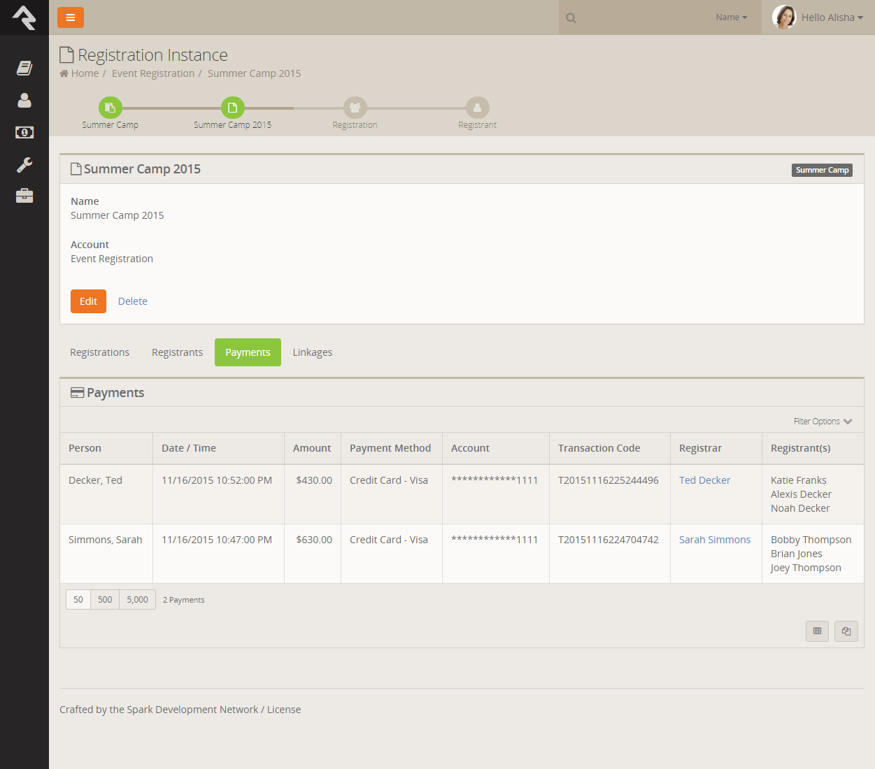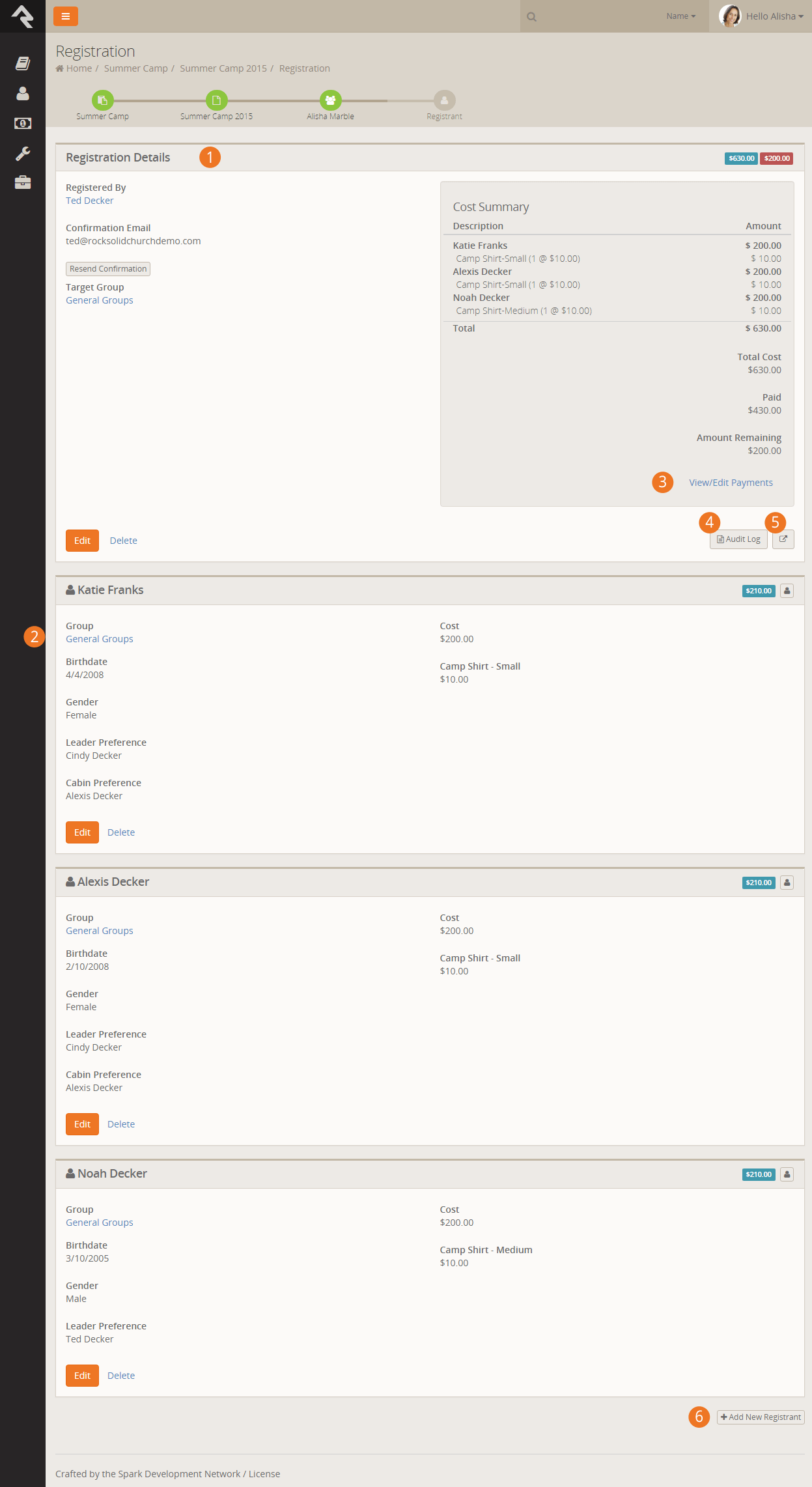 case. Ted Decker might register his two children for camp. In this latter case, Ted would