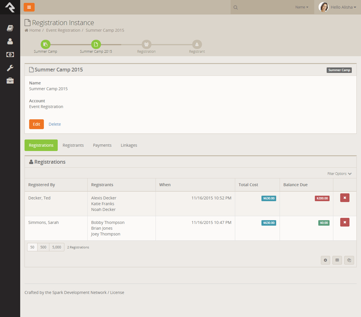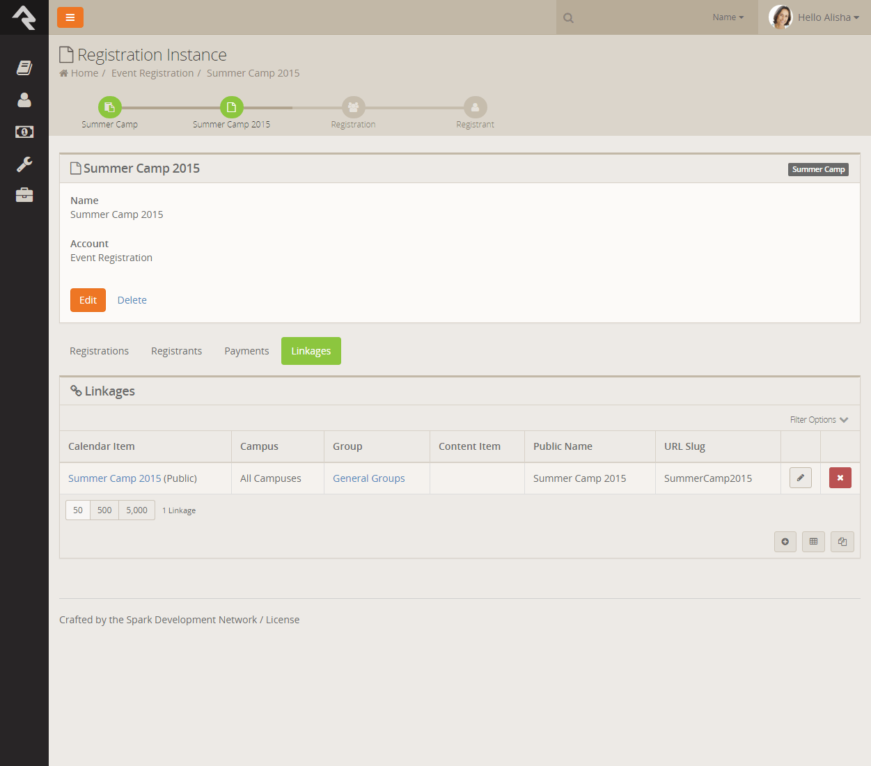 you can say Registration/SummerCamp2015 instead.