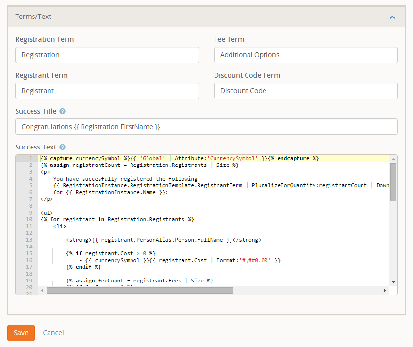 - Registration Template: We can choose which registration template we