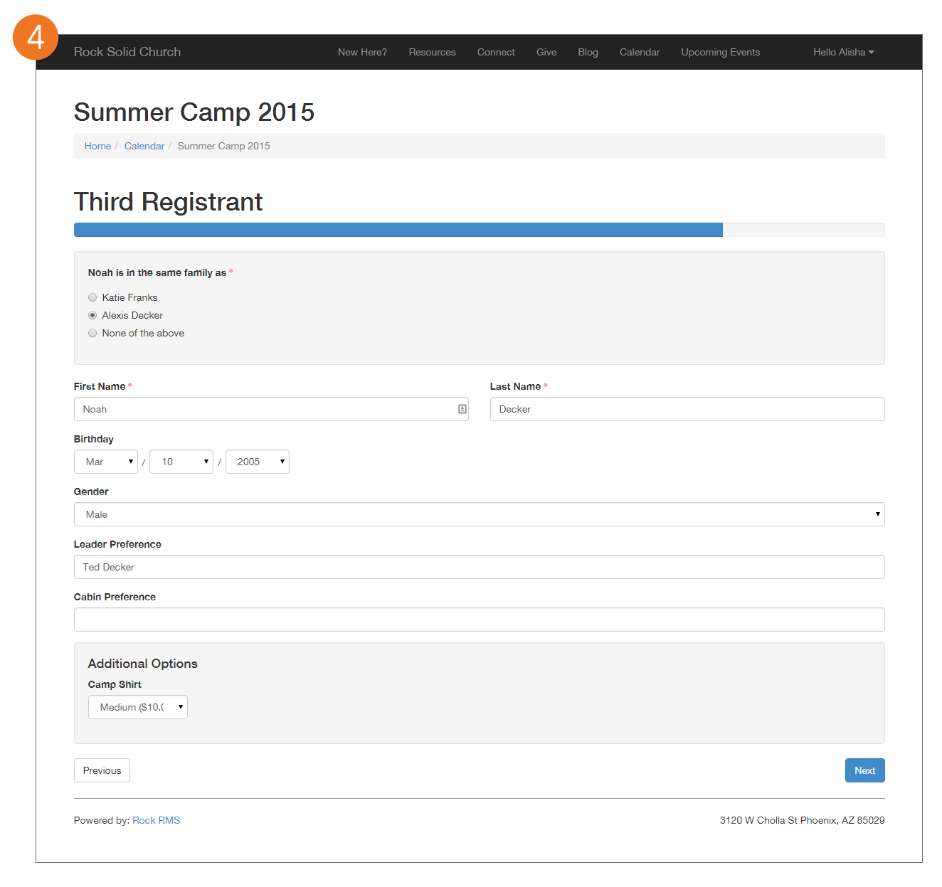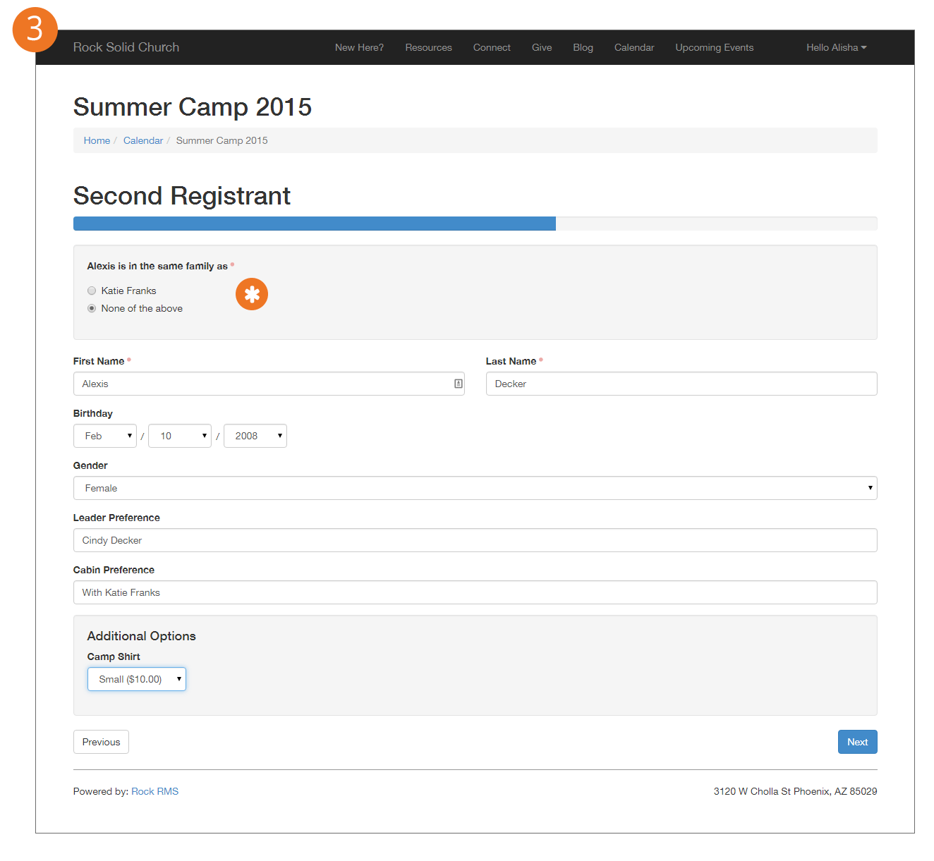 - Include Family Members: Determines if a list of family members should be displayed to include in the registration.