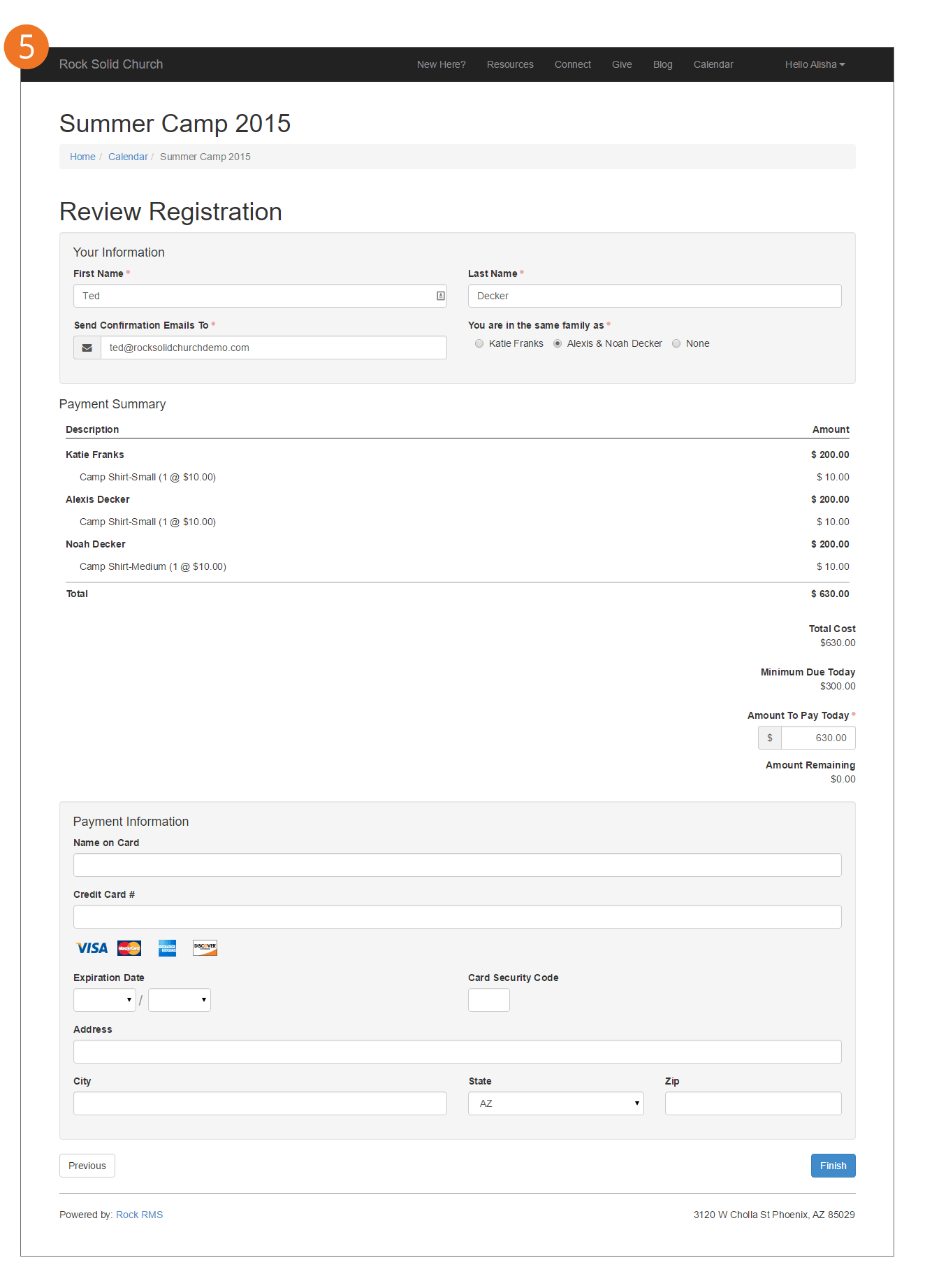 - New family members or guests can be added during the event registration process