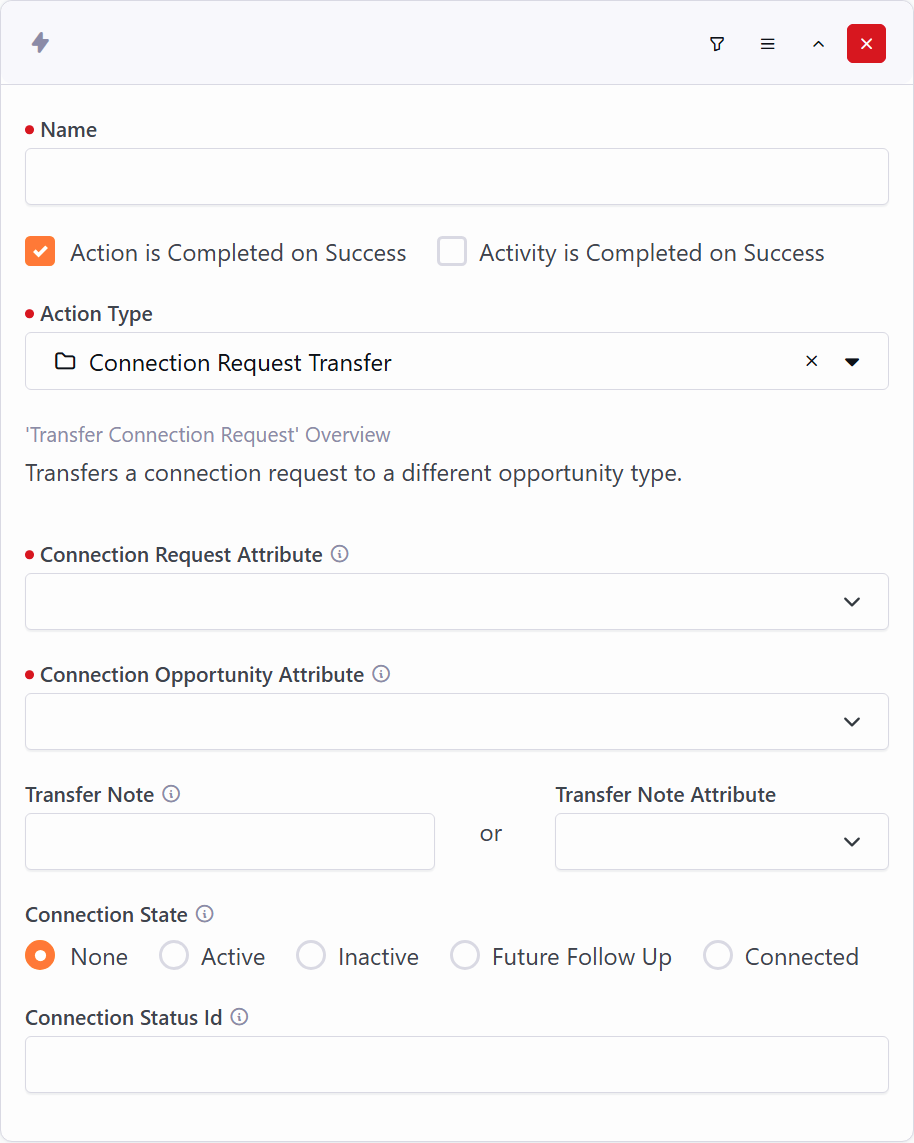 This action adds a new connection activity to the connection request