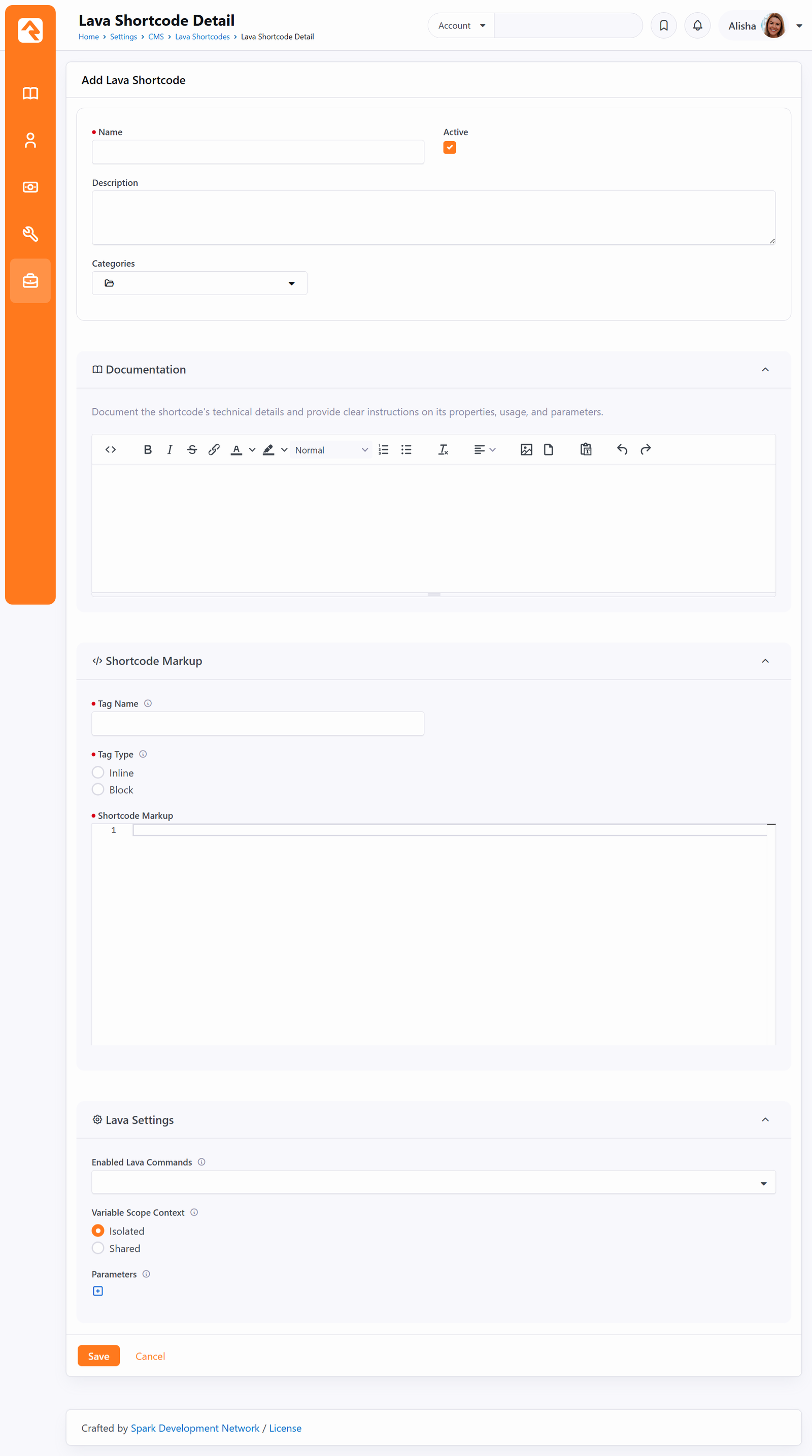 Authoring Shortcodes Writing shortcodes is simple. They're just Lava templates. Below are a few points to keep in mind as your write your own shortcodes. Select The Proper Shortcode Type As we already mentioned it's very important that you select the proper type of shortcode before you start using it. Changing it in the future means having to update all of your Lava templates that use it. The biggest factor in your decision of which type to use will be how much data your shortcode will pass and if any of the data has repeating sections. Let's consider a couple examples. The parallax shortcode needs to access a large amount of HTML to place inside the parallax section. While this could be passed through a standard parameter {[ parallax content:'... ]} this would be limiting in a number of ways. For example, the content could not have any line breaks and it would not be allowed to have any single quotes. Consider next the googlemap place holder. It allows you to enter a variable number of map points. Again, you could use a single inline parameter, but this would be very difficult for the person who wanted to use your shortcode. Finally, think about the youtube shortcode. In this example only a small amount of configuration is required, so an inline shortcode works great. It comes down to how much data is being passed by the shortcode. For larger amounts of data, use the block shortcode type. For lesser amounts, use inline. Configuring Parameters You can configure parameters when setting up your shortcodes. While you technically don't need to configure parameters, any parameter that another person adds to the shortcode will be passed to your Lava template. Configuring the parameters when you write your shortcode provides two advantages. Configuring the parameter guarantees that it will exist when it's passed to your Lava. This means you don't have to check for its existence. Instead, if you need to check if the parameter has a value, you can do a simple check to see if it's empty. Configuring a parameter allows you to provide a default value. Again, this simplifies your Lava and reduces the number of lines of code you'll need to write. The Lava you develop for your shortcode is passed in all of the parameters found on the shortcode tag as well as any parameters you defined as the author. Rock also provides an additional parameter 'uniqueid' which is a unique identifier for you to use for things like CSS id's and variables in your Javascript. It takes the form of 'id-4535a4a9-1b82-4d5b-9120-8c9c41eefcd6'. You don't need to use this identifier, it's just provided as a convenience to you. Note: Your parameter keys need to be all lowercase for them to work properly; this is typical practice in Lava but is enforced here. Keys with uppercase characters will always return the default value that you provide in the shortcode definition and will not be able to be set from the HTML block where you are calling the shortcode from. Enabled Lava Commands You can enable certain Lava commands to be able to run within your shortcode. These commands do not need to be configured in the source block to run. For instance, if your shortcode is being used on a web page and requires the RockEntity command, the HTML Block does not need to have the command enabled if you've configured access on your shortcode. Adding Lava Shortcodes in Rock Lava Shortcodes can be found at Admin Tools > CMS Configuration > Lava Shortcodes. Lava Shortcodes Pictured above, you can assign categories to your shortcodes. This lets you group shortcodes according to their function, and allows you to filter the list of shortcodes by category. A single shortcode can be assigned to multiple categories. The categories for a shortcode can be added from the Lava Shortcode Detail page, pictured below. We want to ensure the shortcode list is searchable in this manual. For this reason, we've listed below the shortcodes that are pictured above. Name Description AccordionAllows you to easily create a Bootstrap accordion control. AI Completion (Experimental)Processes a completion using a AI provider. Campus PickerDisplay a dropdown list of campuses for quick selection. ChartAdding dynamic charts to a page can be difficult. The chart shortcode allows anyone to create charts with just a few lines of Lava. CurrencyAdd a currency input field with automatic number formatting. Date PickerProvide an interactive calendar for selecting a single date. Date Range PickerLet users select a start and end date using a single control. Defined Value PickerDisplay a dropdown populated with defined values from Rock. DropdownCreate a standard dropdown menu for single-option selection. Easy Pie ChartLightweight plugin to render simple, animated and retina optimized pie charts. Follow IconAdd an icon with the ability to follow any entity with a click. Google HeatmapAdd an interactive visualization to depict the intensity of data at geographical points. Google MapAdd interactive maps to your site with just a bit of Lava. Google Static MapEasily allow you to add Google static maps without having to remember complex settings. KPICreate quick key performance indicators. Media PlayerMedia Player displays a single URL or a Media Element in a player. MemoDisplay a multi-line text area for longer input or notes. Network GraphDisplays a set of data as a diagram showing how different nodes are interconnected. PanelThe panel shortcode allows you to easily add a Bootstrap panel to your markup. ParallaxAdd a scrolling background to a section of your page. Radio Button ListDisplay a list of radio buttons for single-choice selection. Range SliderInclude an adjustable slider control to select numeric values or ranges. Sankey DiagramShow data flow between nodes using a Sankey diagram visualization. Scheduled ContentThe scheduled content shortcode will show/hide a block of content based on a provided Rock schedule. ScripturizeScripturize reads through text finding scripture references and con