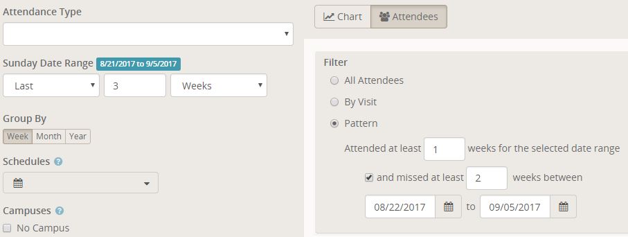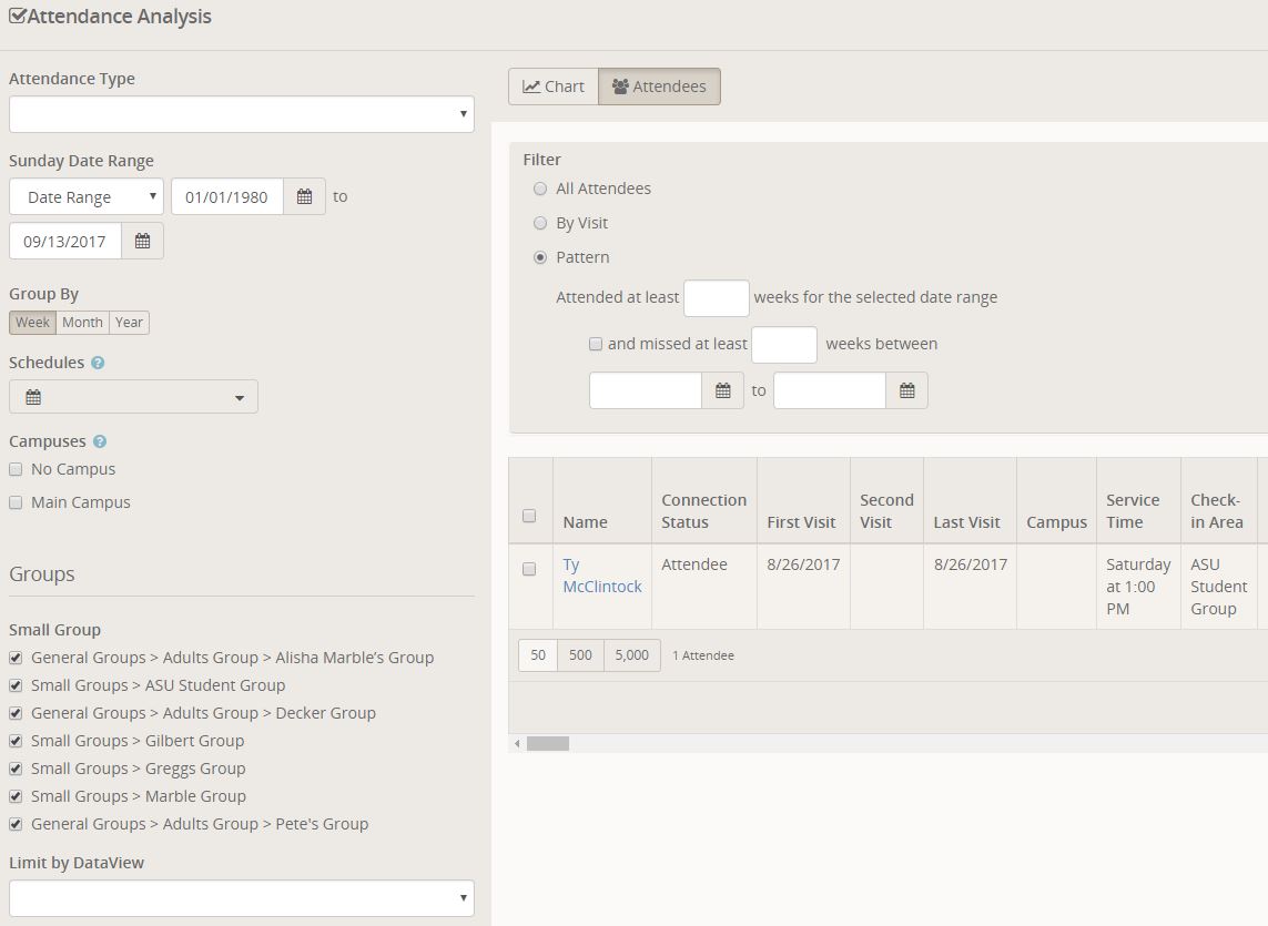 0 Exporting Attendance 3 Holly Kemp posted 8 Years Ago I have created a group in group finder and set it up to take attendance. So every week I go in and check mark the people that were at service. What I would like to do is export my attendance report so I can see when someone has missed. Is that possible?