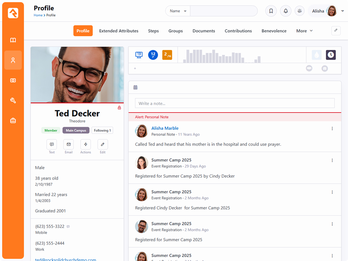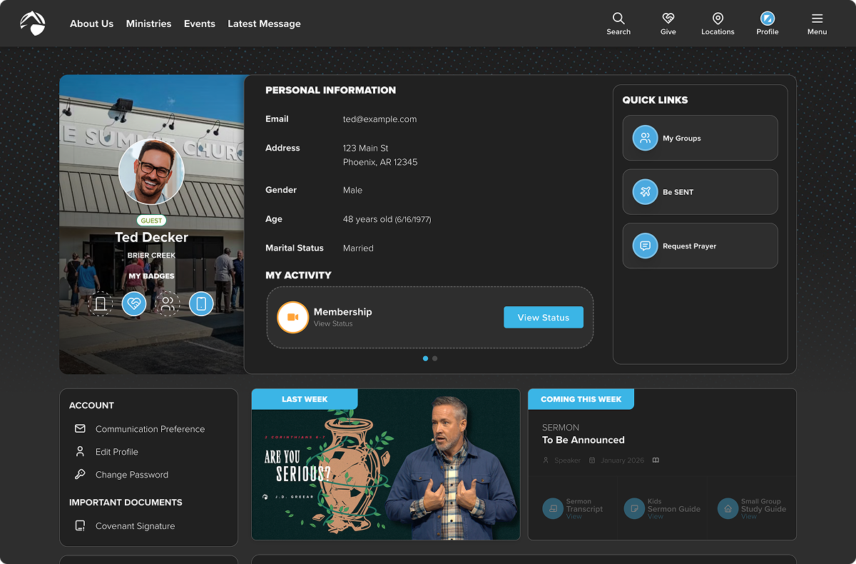 Everything needed to deliver digital experiences including websites, mobile apps, TV apps, content management, personalization, shortlinks, media and interaction tracking. This domain powers how churches present themselves online and tailor content for individuals.