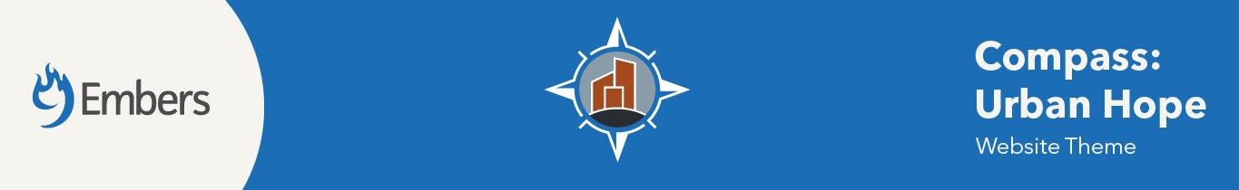 Compass: Urban Hope is a modern website theme for Rock that helps churches launch a new site or refresh an existing one without the cost or timeline of a custom build. Built for designers and content creators, it includes flexible color options, dark-mode support, accessible navigation, and no-code content components that make it easy for staff to manage pages and keep content updated.
